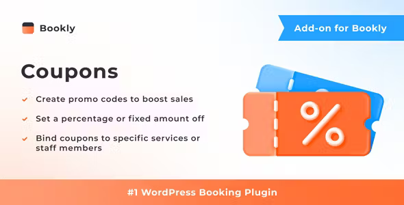 Bookly Coupons Addon is a powerful extension for the Bookly booking system that allows you to create and manage discount coupons for your services. It helps you attract new customers, increase bookings, and boost revenue by offering flexible promotional pricing directly within your appointment booking workflow.