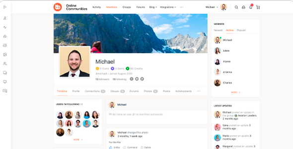 Member Profiles: Empower users to create and customize their Profiles, complete with cover photos and social fields.