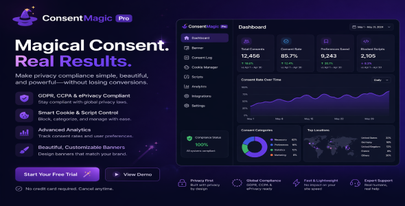 ConsentMagic Pro is a WordPress privacy and consent management plugin designed to help websites collect user consent for tracking and cookies while staying compliant with regulations like GDPR, CCPA, and modern advertising consent requirements.